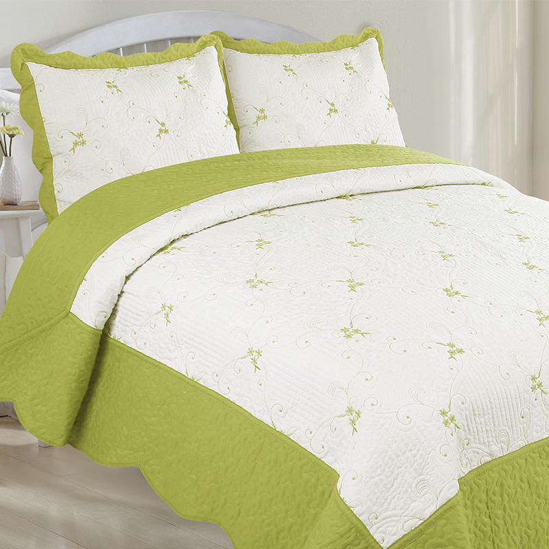 Broderituppen er skjøt for midtre del og utkanter med scollage-kanter. Broderifargen matcher kantstofffargen. Med bomullsfyll er dette sengeteppet tungt nok til å holde deg varm, og dynen er også lett å bruke om sommeren. Enhver farge er tilgjengelig.